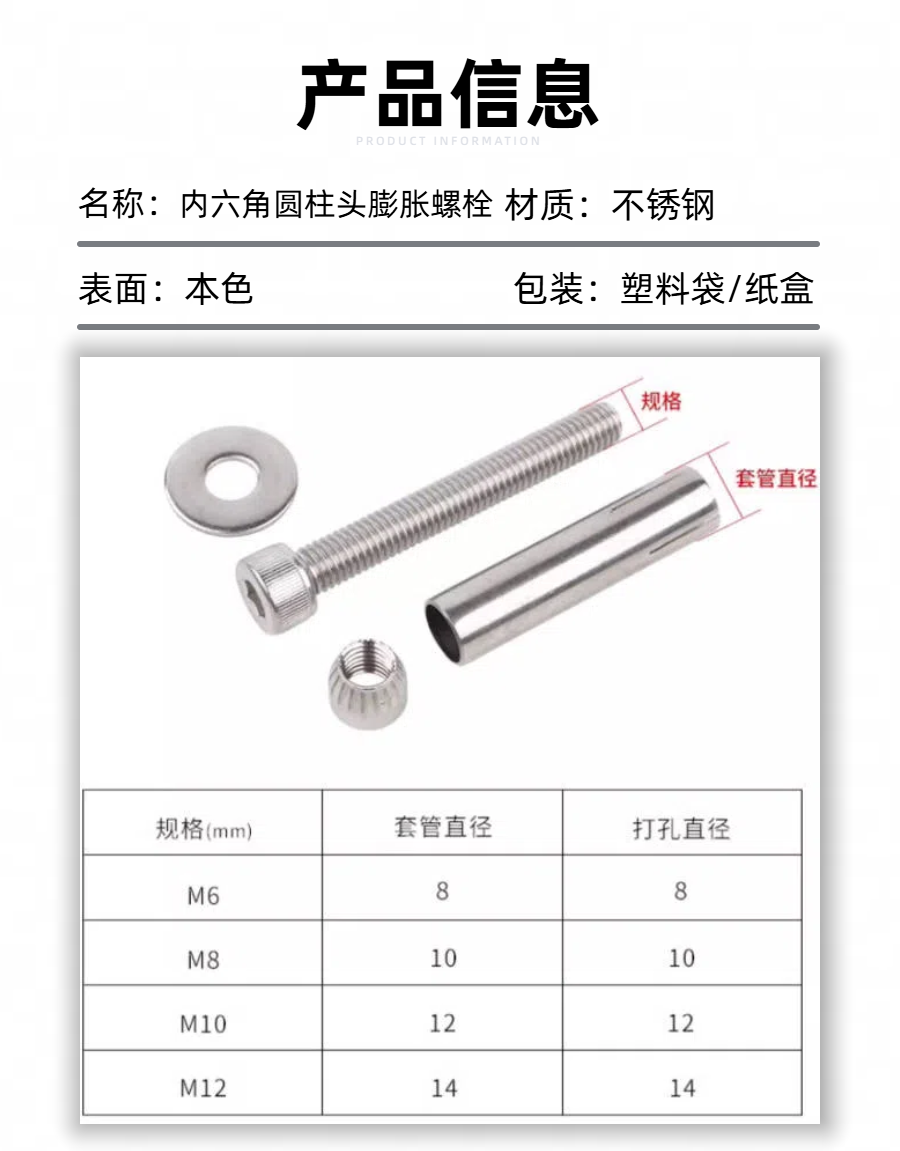 内六角圆柱头膨胀螺栓介绍